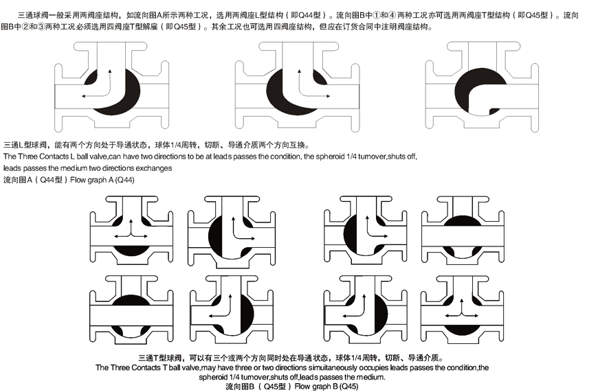 Q644氣動法蘭L型三通球閥用于介質流向的切換,能使相互垂直的兩個通道連通。三通球閥一般采用兩閥座結構,亦可根據用戶要求采用四閥座結構。四閥座密封三通球閥具有造型美觀、結構緊湊合理,它不僅可實現介質流向的切換,也可使三個通道相互連通,同時也可關閉任一通道,使另外兩個通道連通,靈活控制管路中介質的合流或分流。