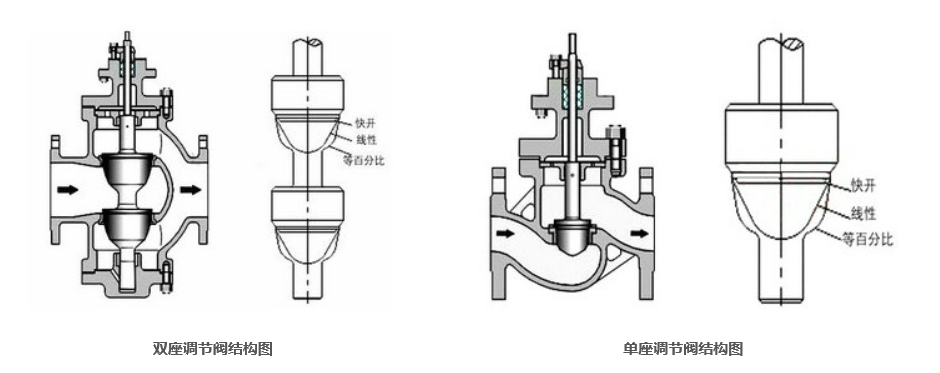對于這兩者之間該如何選用,從名稱上我們可以很明白的看出,一個是單座,一個是雙座,顧名思義就是閥座的區(qū)別,雙座就是閥體內(nèi)有兩個閥座,單座就是閥體內(nèi)有一個閥座。