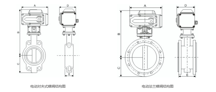 電動(dòng)對(duì)夾式蝶閥與電動(dòng)法蘭蝶閥的區(qū)別: